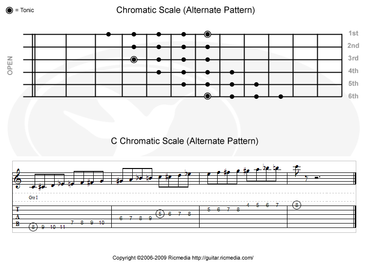 Here's another way to play a chromatic scale. This pattern is more useful, as a fingering exercise if nothing else:
